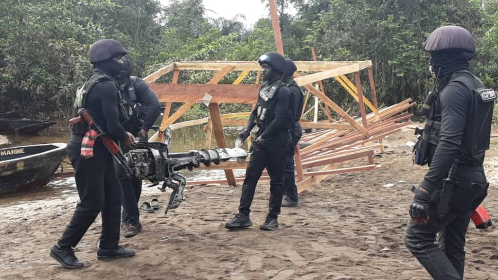 “The Team swung into action without wasting time and was able to uncover a bunkering site where local refining of petroleum products had been carried out for a long time; about 2 large wooden Pour-put boats were seen at the river bank, some cellophane bags were loaded in fibre boats but at the mere sighting of our operatives; the perpetrators took to their heels.