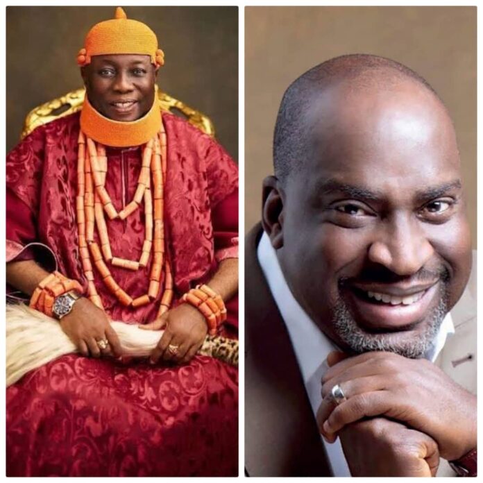 The Asagba of Asaba, Professor Epiphany Chigbogu Azinge, has conferred chieftaincy titles on Ogbueshi Chike Ogeah, managing director of MacFally Hospitality Limited, owners of Marriott Hotel, Ikeja, Lagos and one time Commissioner for Information in Delta State as well as Ogbueshi Ken Odogwu, son of late industrialist, Chief Sunny Odogwu.