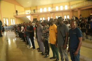 The president of Isoko Development Union, Professor Chris Akpotu, represented by the 1st vice president, Prince Desmond Ogbaudu, performed the swearing in ceremony and urged the elected youth executive to be loyal and show respect to the parent body of the union, just as he urged the people to remain peaceful.