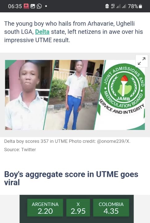 The intelligent 16 year old who chose Federal University of Petroleum Resources and Chemical Engineering as an institution and course of first choice, respectively, is considering changing to artificial intelligence and University of Lagos as current realities demand. However, he is constrained by finances as his father who was formerly a banker lost his job some years back while his mother is a poor classroom teacher in a private secondary school in Warri.