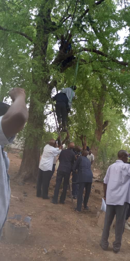 Men of the state Fire Service and security personnel were immediately mobilized to the scene of the incident to bring down the victim from the tree. It was the first time such incident would occur in the state House