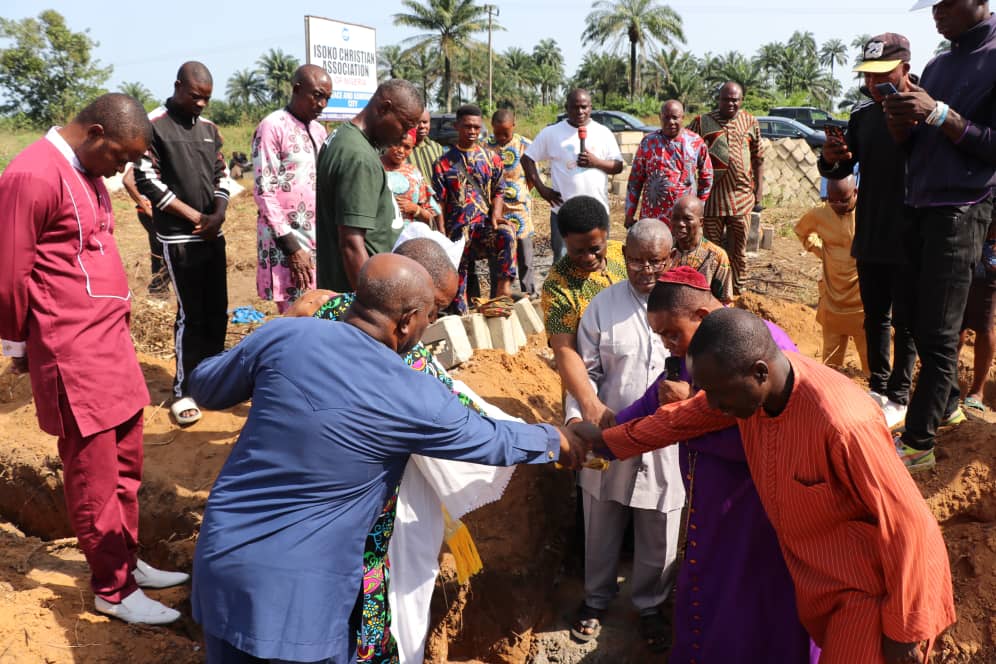 Laying the foundation, Archbishop (Barr.) Gimbright Adaigho, accompanied by Bishops and heads of various denominations, commended Apostle Oki for personally embarking on building the National secretariat of the Christian Association, adding that ‘the history of Isoko Nation has changed to the Glory of God’.