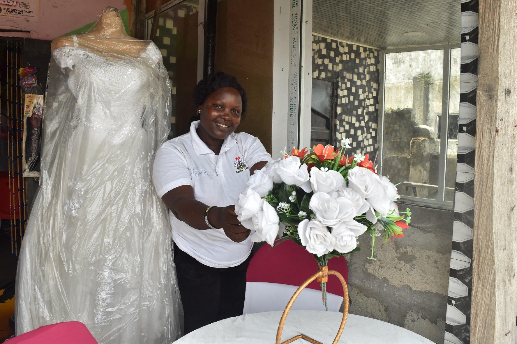 “I was skilled in hairdressing before STEP training; so, I combined my skill in hairdressing with decoration to establish what I enjoy today. I have diversified into renting of bridal gowns while I sell hair beauty products, bridal accessories such as bouquets and jewellery.