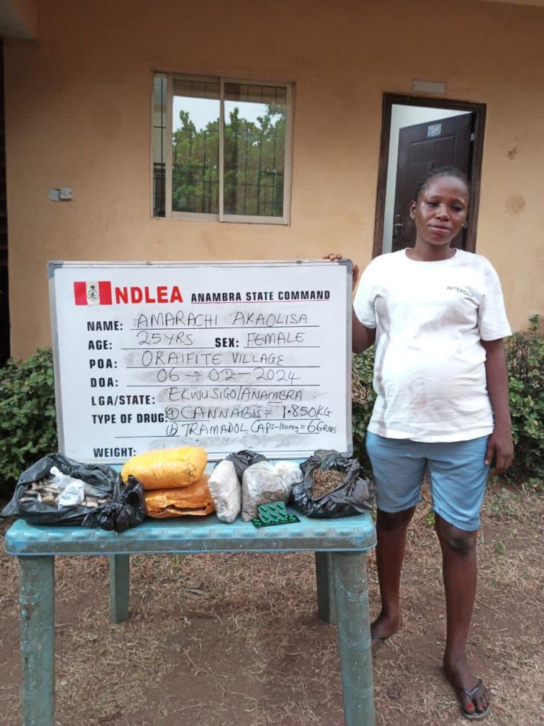 Babafemi also said a six-month pregnant woman, Amarachi Akaolisa, 25, and another lady, Ifeoma Iheanyi, 21, were among six suspects arrested for dealing in illicit substances in Oraifite and Umuni-Evili, Aguleri, Anambra state. Others nabbed include: Okwuchukwu Chukwuka; Onyedika Ngwu; Ekene Hyginus and Nzomiwu Ikechukwu, and recovered from them were over six kilogrammes of cannabis, tramadol, diazepam and codeine syrup in raids conducted by NDLEA operatives between last Tuesday and Thursday in parts of the state.