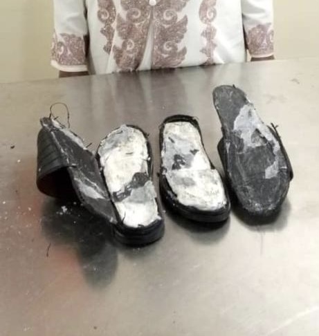 The suspect, who claimed to be a businesswoman trading in adults and childrens wears on Lagos Island, was intercepted on Sunday 13th November while trying to board a Qatar Airways flight going to Saudi Arabia via Doha, and upon a critical examination of the pair of sandals she was wearing, two parcels of cocaine weighing 400 grammes were recovered.
