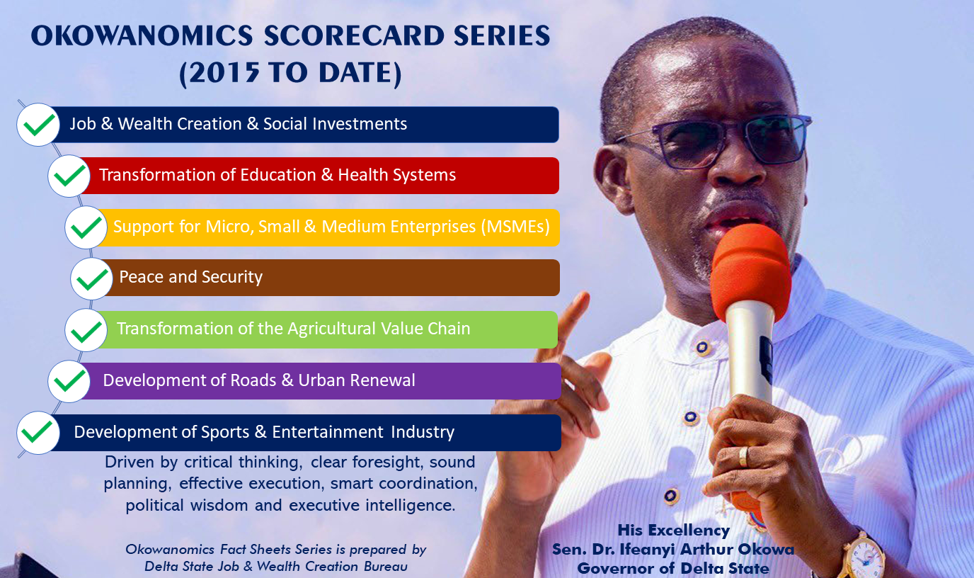 Okowanomics Scorecard Series is a semi-monthly [twice-a-month] bulletin of evidence-based “Fact Sheets” showing Governor Okowa’s spectacular achievements in the social, infrastructural and economic development of Delta State. The Scorecard Series is a “book of chronicles” of Governor Okowa’s legacies and footprints in the geopolitical entity of Delta State. It is a tracker dashboard that mirrors real-time the unique developmental strides in Delta State under the leadership of Governor Okowa.