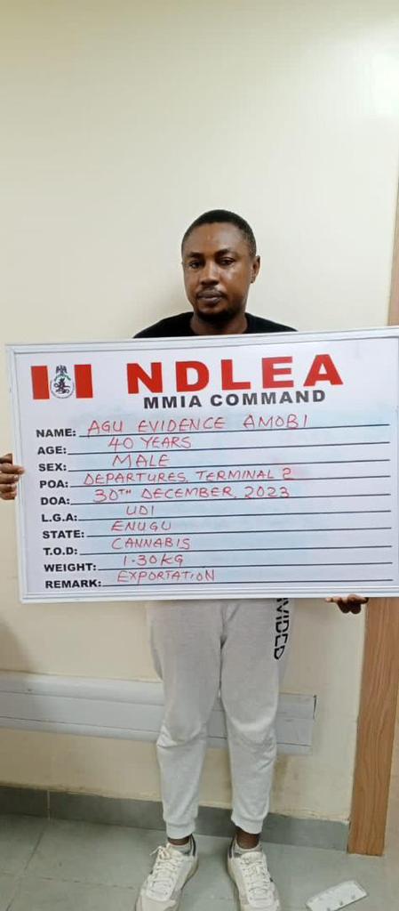 According to Babafemi, Amobi who claimed he has been living and working in Doha, Qatar for over 10 years was caught with 1.3 kilogrammes cannabis sativa concealed in a bag of foodstuff. He claimed he bought the substance in Enugu to deliver in Doha to enable him raise enough funds to pay his rents in Doha and Nigeria and school fees of his three children.