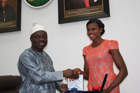 In addition, the Governor appointed Miss Okagbare the Youth Ambassador for the state, gave her a parcel of land in Asaba and announced the naming of a stadium in the state after her.