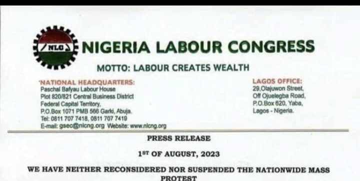 A press statement signed by President of the Nigeria Labour Congress (NLC), Comrade Joe Ajaero and made available to Blank NEWS Online reads: